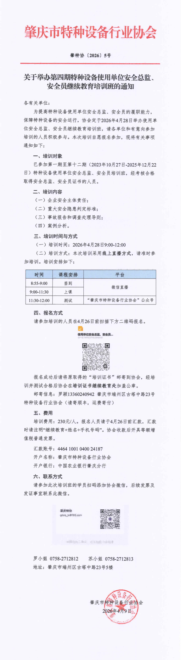 关于举办第四期特种设备使用单位安全总监、安全员继续教育培训班的通知4.28.pdf