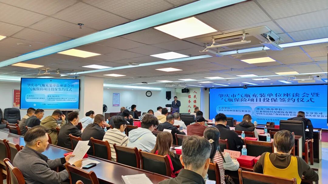 12月23日,由肇庆市特种设备行业协会主办,江泰保险经纪股份有限公司广东分公司承办,中国人民财产保险股份有限公司肇庆市分公司协办的“气瓶充装单位座谈会暨气瓶保险项目投保签约仪式”成功举办。本次活动以“筑牢安全防线,护航行业发展”为主题,汇聚了气瓶充装企业代表及保险合作方代表,共同见证行业安全治理新模式落地。
