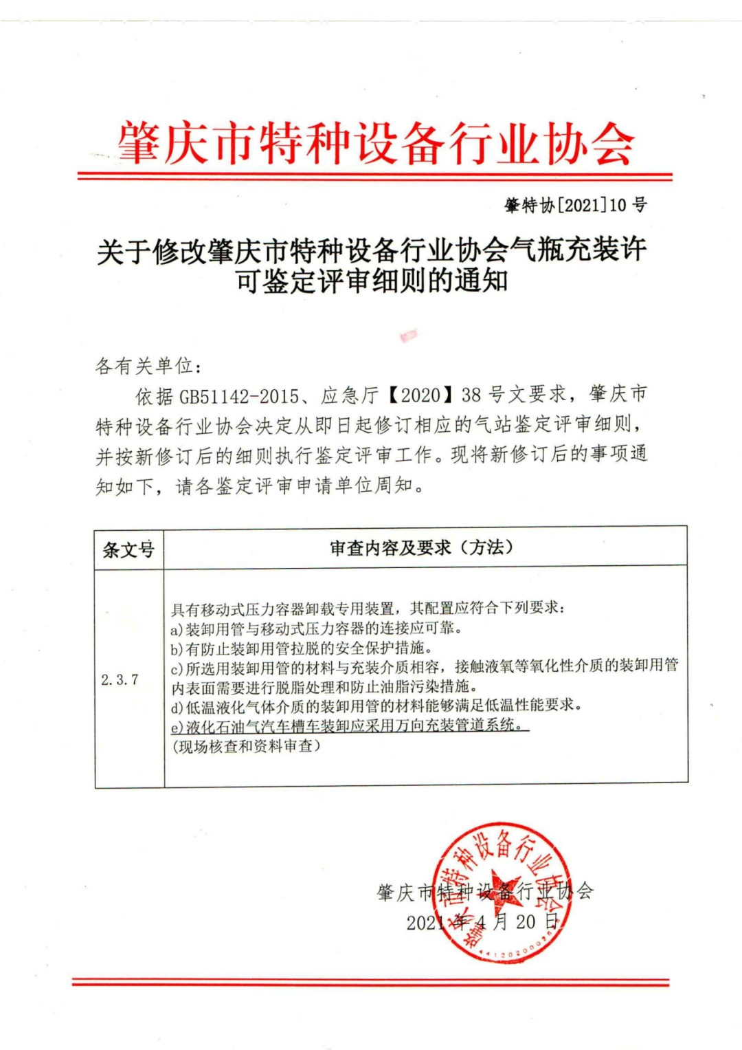 关于修改肇庆市特种设备行业协会气瓶充装许可鉴定评审细则的通知
