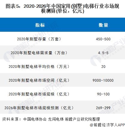 随着房地产业的发展以及存量别墅改造的巨大需求,未来5年,中国家用(别墅)电梯市场将保持每年20%的递增速度,到2026年中国家用(别墅)电梯行业市场规模将接近300亿元。