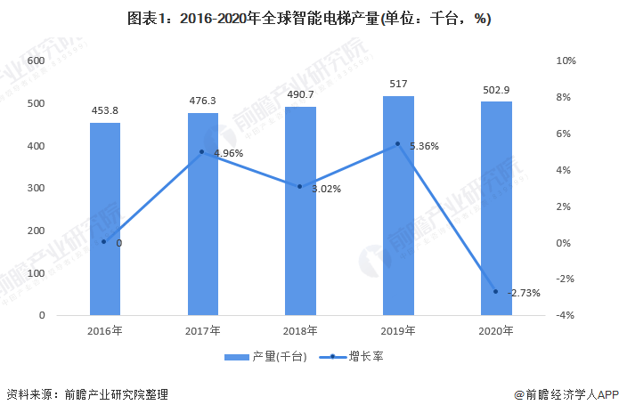 2016-2019年全球智能电梯持续增长,2020年同比下滑