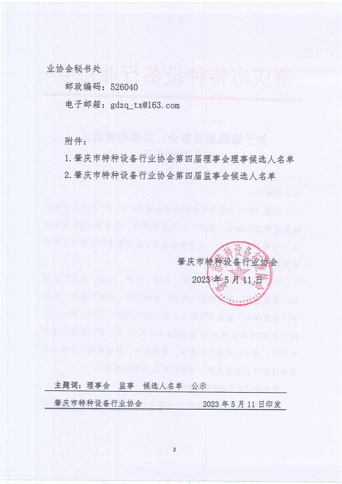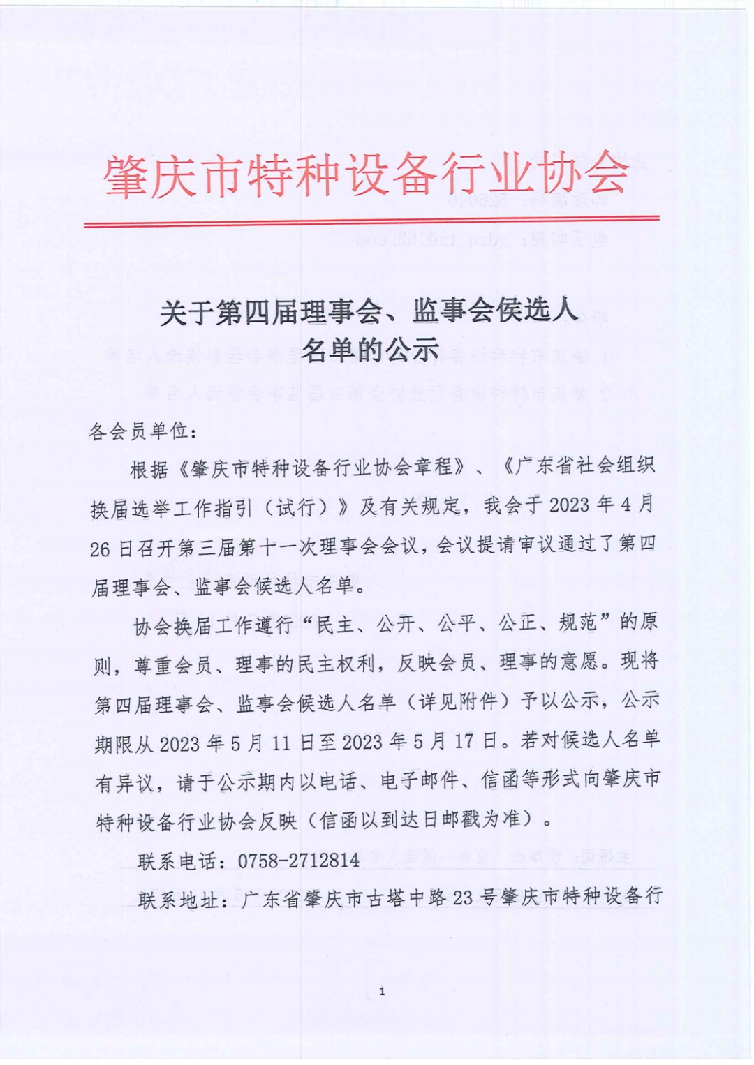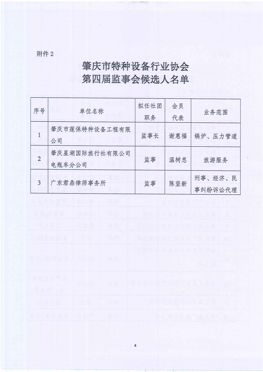 关于第四届理事会、监事会侯选人名单的公示