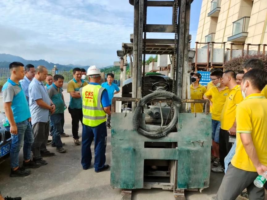 本次培训内容包括叉车相关法规知识、叉车基本结构及其功能原理、叉车驾驶行为守则、车辆防火、事故案例、事故分类及法则等理论知识和新车磨合期使用注意事项、日常作业安全注意事项、日常维护保养要求等实际操作。