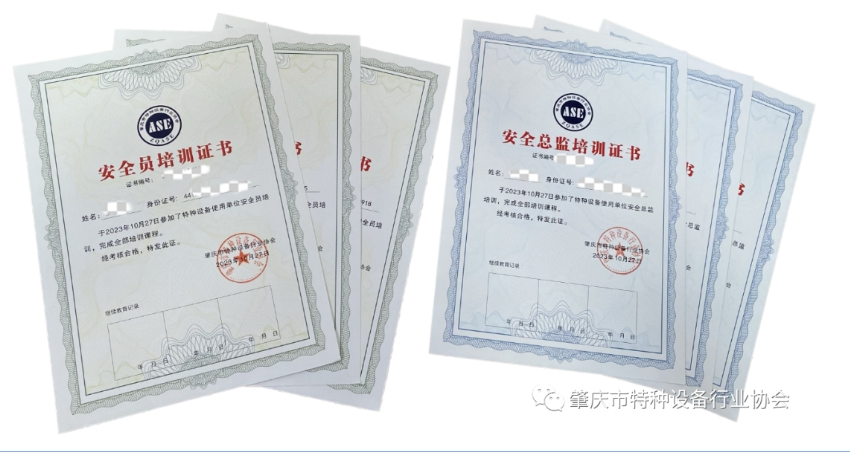 培训结束后,参培学员进行了考核测试,经考核合格的安全总监、安全员,已获颁发《安全总监培训证书》、《安全员培训证书》。协会将根据企业需求,计划11月份继续开展第二期特种设备使用单位安全总监、安全员培训,帮助企业提升特种设备安全管理能力。