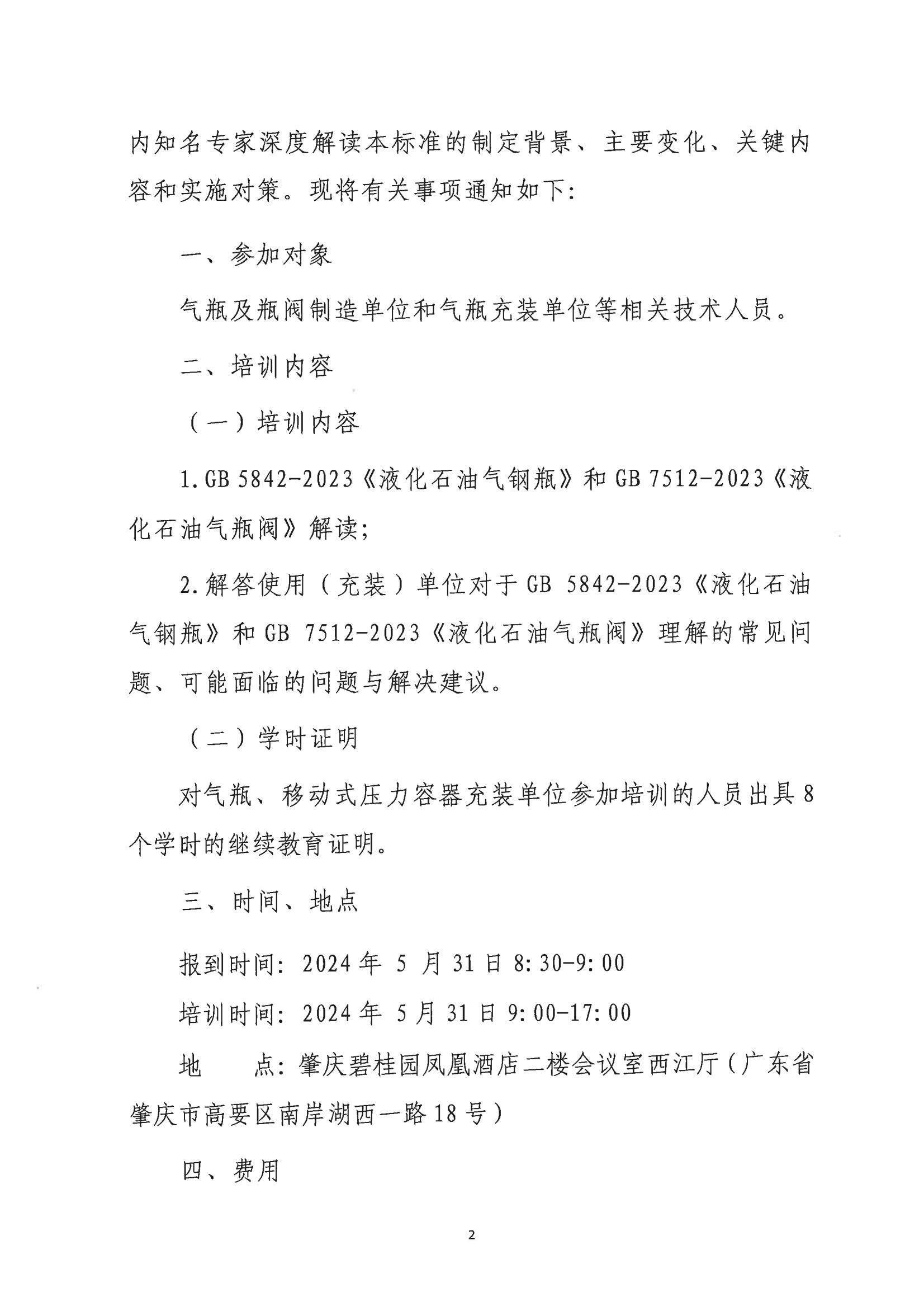 关于在肇庆市举办GB5842-2023《液化石油气钢瓶》GB7512-2023《液化石油气瓶阀》宣贯班的通知