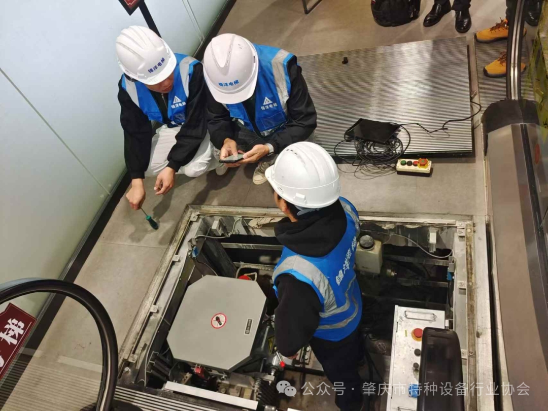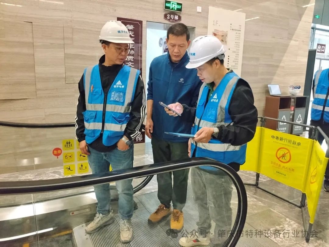 当天,锦洋公司力邀肇庆市特种设备行业协会(以下简称:市特协)与肇庆梯天下科技有限公司(以下简称:梯天下)一行,进行自动人行扶梯与客梯的现场检查与指导工作,保障锦洋公司于2024年12月1日全面使用梯天下电梯维保无纸化系统顺利开展维保作业。