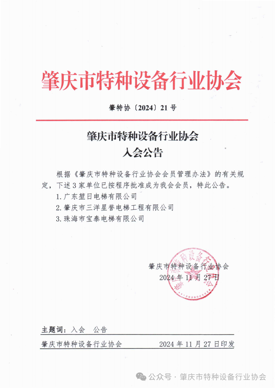 肇庆市特种设备行业协会入会公告