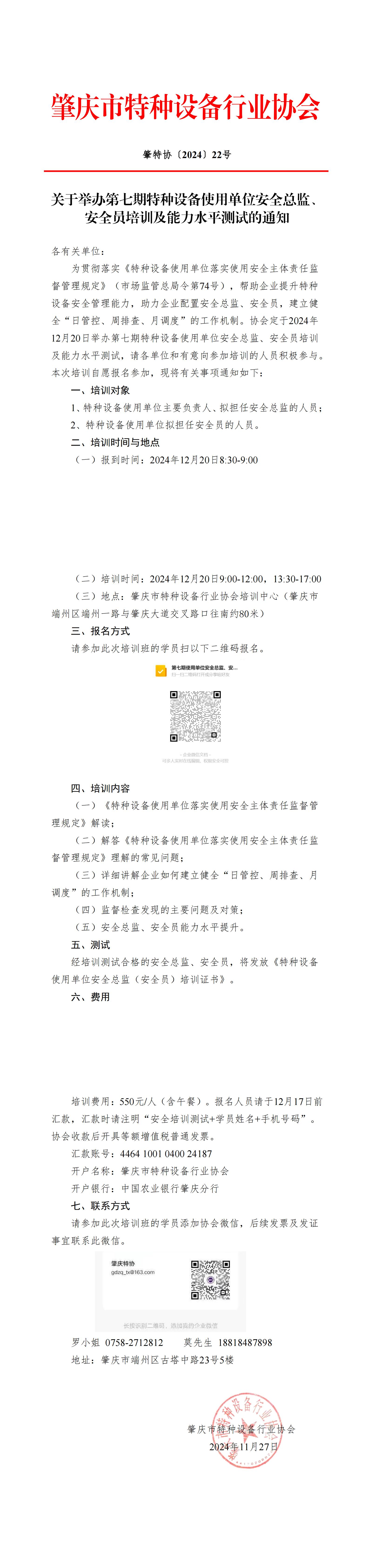 关于举办第七期使用单位安全总监、安全员培训及能力水平测试的通知