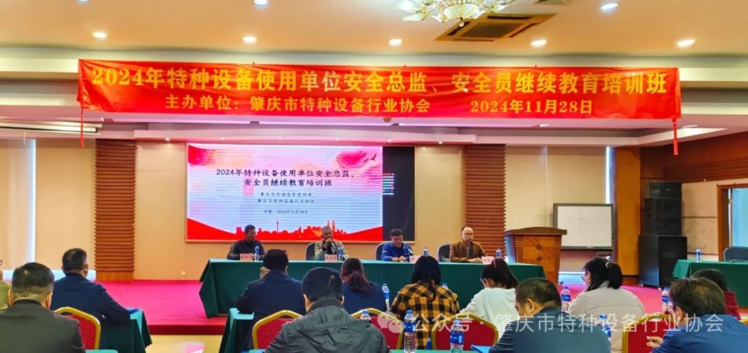 11月28日,肇庆市特种设备行业协会顺利举办了特种设备使用单位安全总监、安全员继续教育培训班。协会会长陈庆军、秘书长侯树海、培训部主任莫健文出席本次培训,现场共有197名学员参加培训。