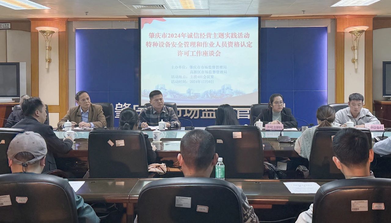为进一步规范我市特种设备安全管理和作业人员资格认定许可工作,提高业务申办工作质量和效率,近日,肇庆市市场监管局组织召开了特种设备安全管理和作业人员资格认定许可工作座谈会。市局相关业务科室、肇庆高新区市场监管局、省特检院肇庆检测院、市特种设备行业协会、特种设备使用单位以及部分申请人代表共50多人参加。