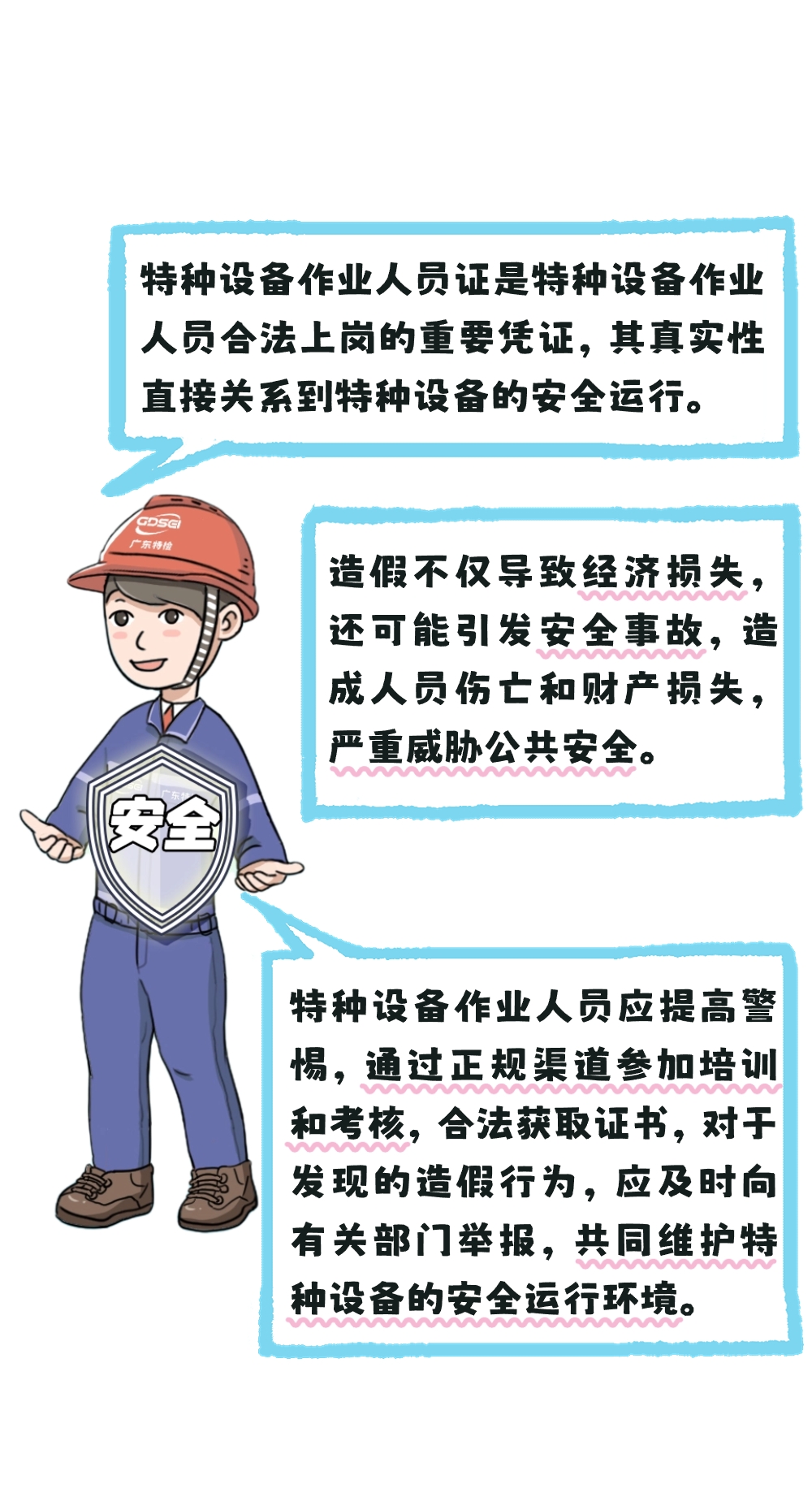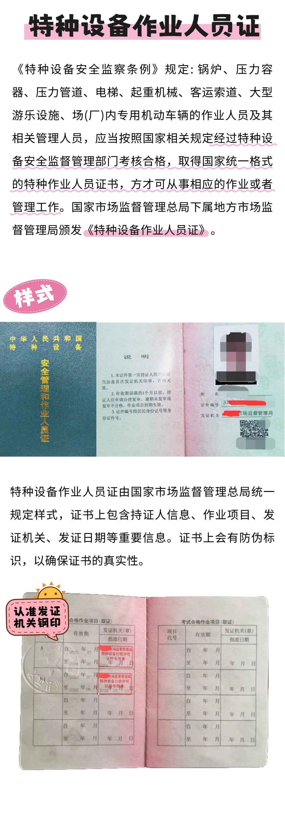 特种设备作业人员在工作中接触的危险因素较多,很容易发生生产安全事故。发生事故时不仅对作业人员本人,而且也会对他人和周围设备、设施造成较大危害。特种设备作业人员具备专业知识并持证上岗,是经营者及作业人员必须履行的法定责任。市场监管部门始终将无证、假证从事特种设备作业作为日常检查重点,切实防范安全事故发生。