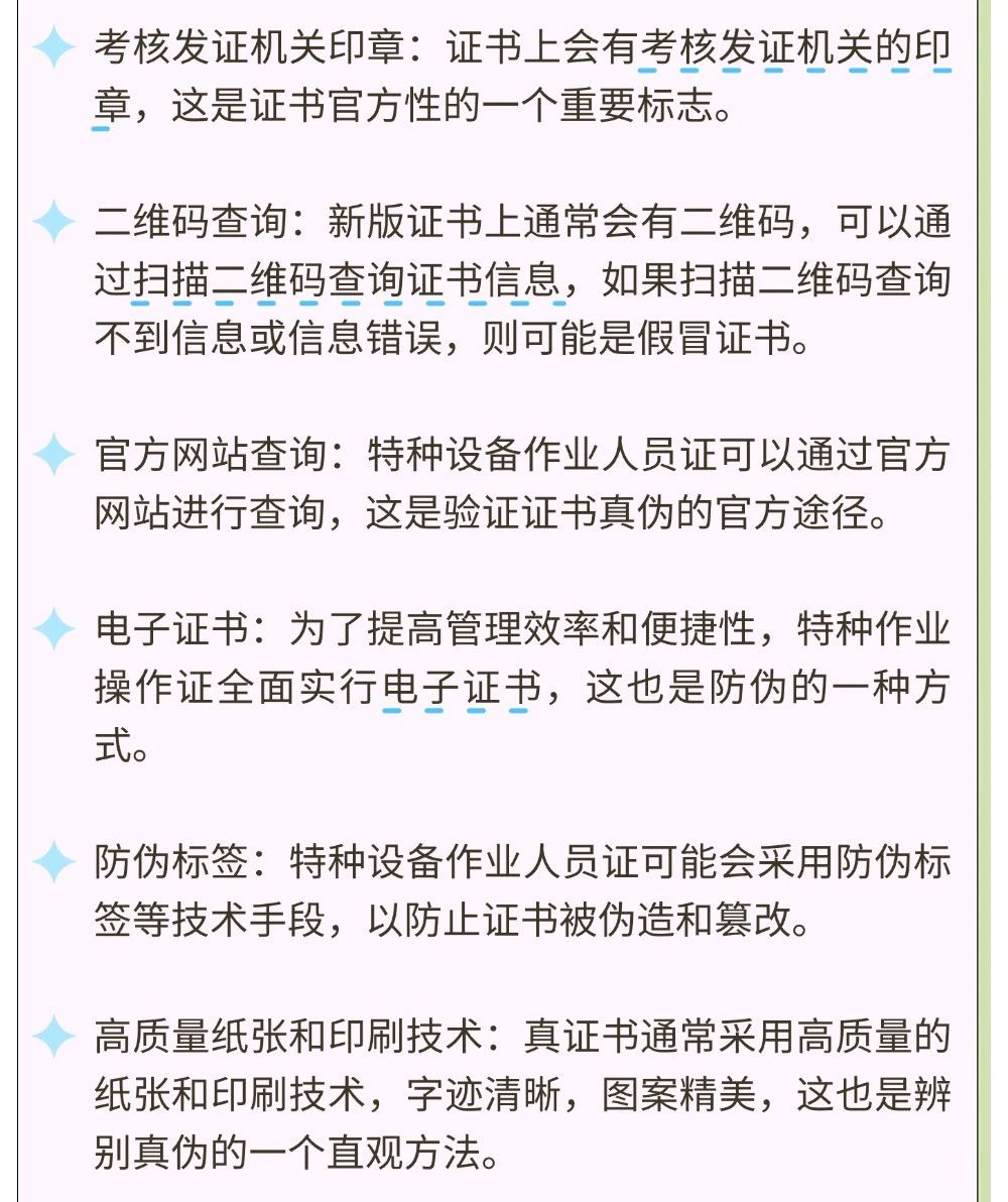 职业资格考试的报考持续火热,不少教育培训机构为了招收更多考生,宣称有内部资料、保证通过率,甚至借用国家机关名义发布虚假广告,不仅欺骗和误导公众,还严重损害了接受教育培训服务对象的合法权益。市场监管部门严肃查处此类违法行为,净化培训市场环境,维护从业人员的合法权益,助推特种设备行业高质量健康发展。