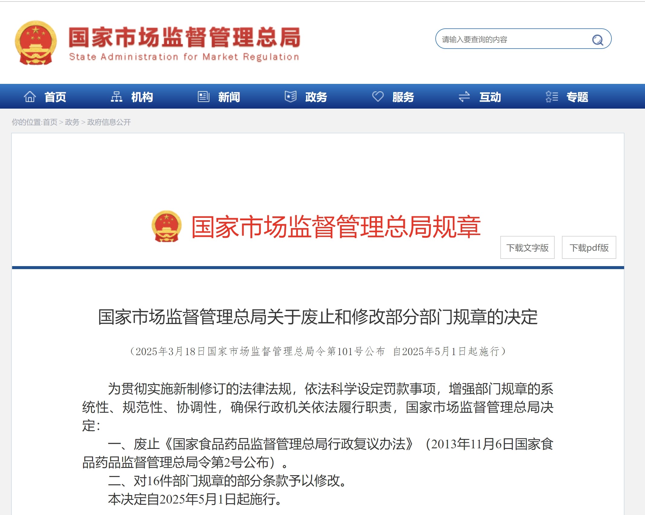 近日,市场监管总局第101号令发布《国家市场监督管理总局关于废止和修改部分部门规章的决定》(以下简称《决定》),废止规章1部,修改规章16部。《决定》自2025年5月1日起施行,修改内容强化了涉企检查有关要求,明确了相关许可审批权限,对部分罚款事项进行了调整。其中,对《客运索道安全监督管理规定》《大型游乐设施安全监察规定》作出修改。