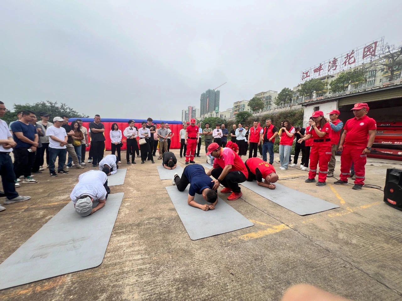 应急演练环节采用“分组配合+情景模拟”的模式,设置急救科普与消防安全演练两大实训模块。模拟突发急救场景中,学员们分组练习心肺复苏“黄金四分钟”抢救、AED除颤仪操作及海姆立克急救法,教官全程跟踪指导,逐一纠正按压手势、操作细节,确保动作规范性和施救有效性。模拟生产车间突发火情场景中,学员们学会了规范使用灭火器精准喷射快速扑灭初期火情,完成了用湿毛巾捂鼻逃生、防踩踏队列疏散等实战项目。整个培训过程中,学员们仔细听、认真练,积极与教官互动,学习氛围浓厚。