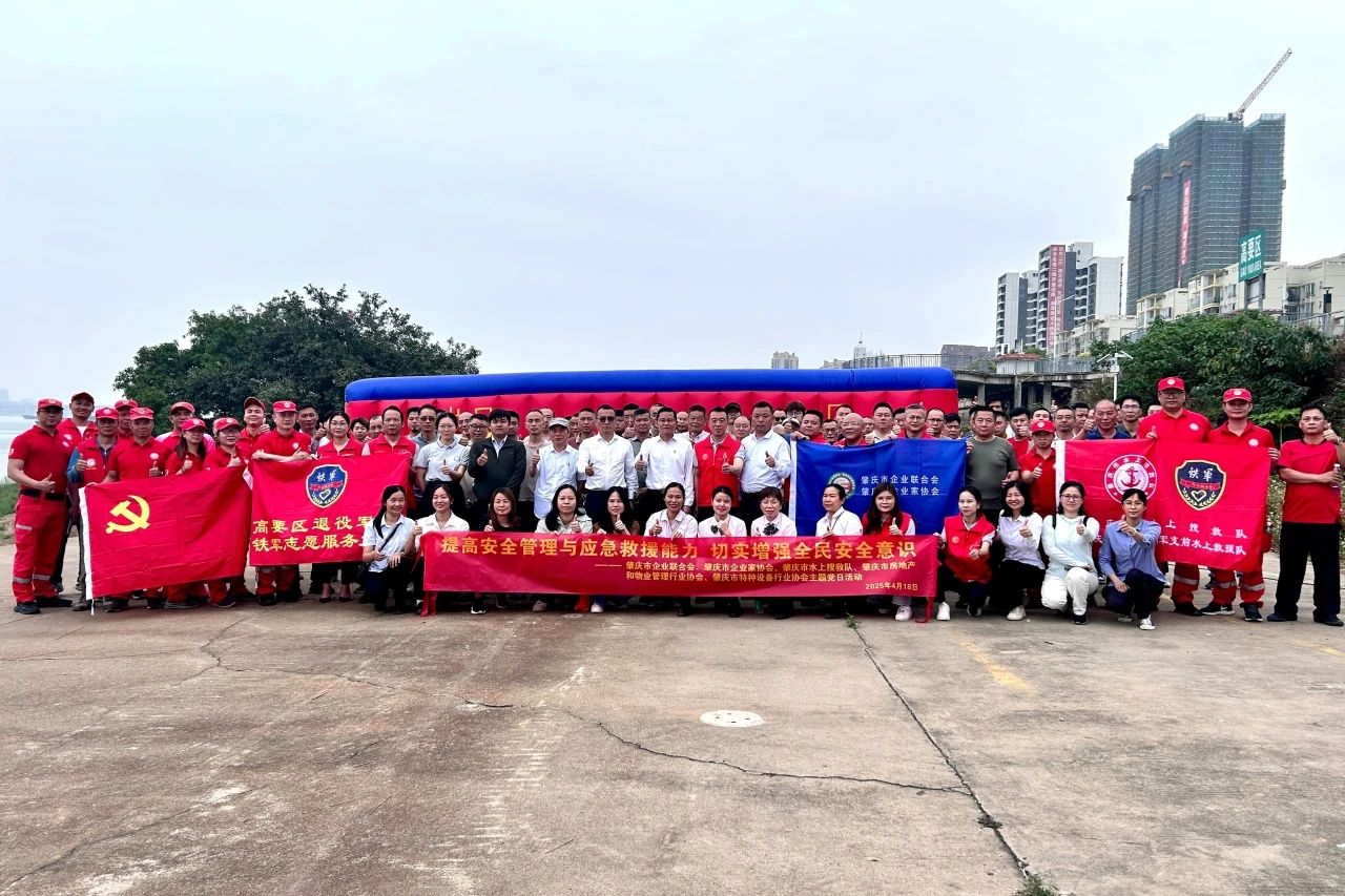 4月18日,肇庆市企业联合会、肇庆市企业家协会、肇庆市房地产和物业管理行业协会、肇庆市特种设备行业协会、肇庆市水上搜救队以及肇庆市退役军人拥军支前水上救援队联合举办肇庆市企业安全应急救援培训班。